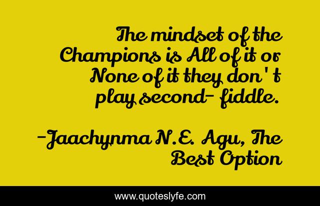 "Jaachynma N.E. Agu, The Best Option Quotes." Quoteslyfe.com, 2025. Tue. 09 Dec. 2025. <https://www.quoteslyfe.com/quote/The-mindset-of-the-Champions-is-All-32541>.