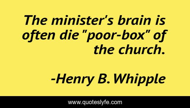 This page presents the quote "The minister's brain is often die "poor-box" of the church.". Author of this quote is Henry B. Whipple. .