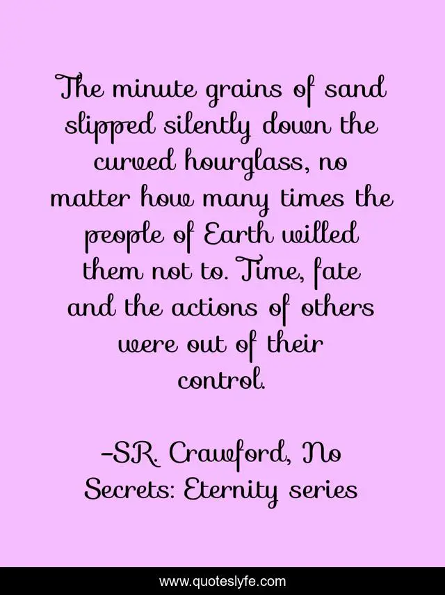 "S.R. Crawford, No Secrets: Eternity series Quotes." Quoteslyfe.com, 2025. Tue. 09 Dec. 2025. <https://www.quoteslyfe.com/quote/The-minute-grains-of-sand-slipped-silently-82898>.
