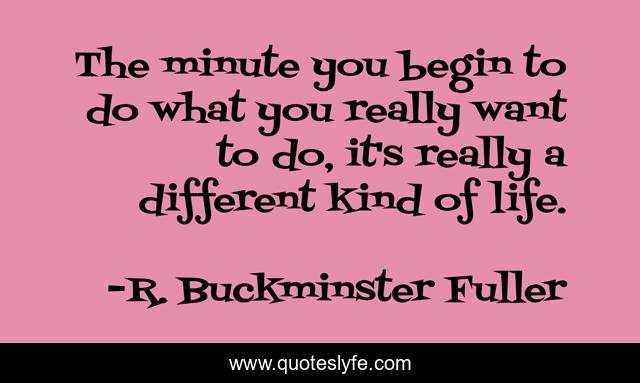 This page presents the quote "The minute you begin to do what you really want to do, it's really a different kind of life.". Author of this quote is R. Buckminster Fuller. This quote is about enthusiasm, inspirational,.