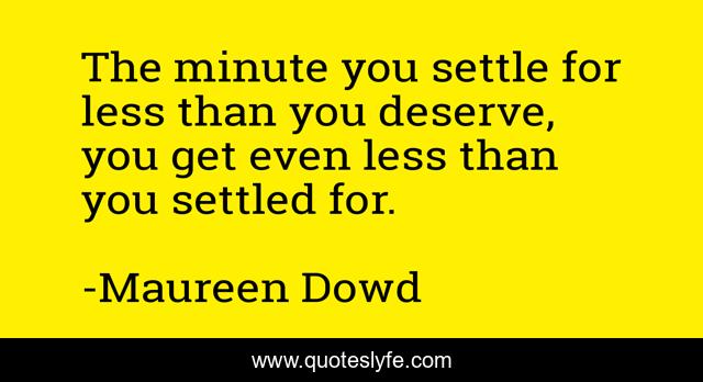This page presents the quote "The minute you settle for less than you deserve, you get even less than you settled for.". Author of this quote is Maureen Dowd. .