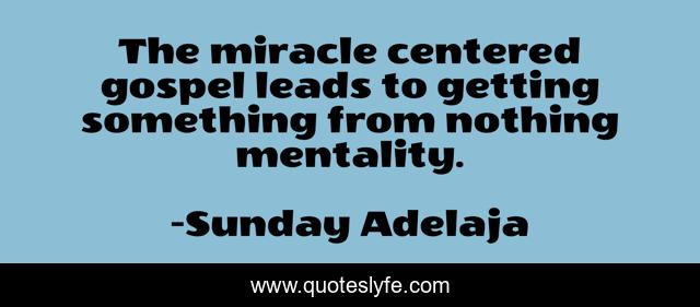 This page presents the quote "The miracle centered gospel leads to getting something from nothing mentality.". Author of this quote is Sunday Adelaja. This quote is about gospel, miracle,.