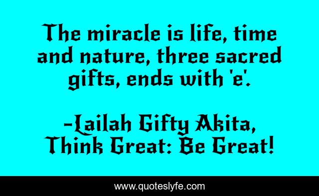 "Lailah Gifty Akita, Think Great: Be Great! Quotes." Quoteslyfe.com, 2025. Fri. 05 Dec. 2025. <https://www.quoteslyfe.com/quote/The-miracle-is-life-time-and-nature-95141>.
