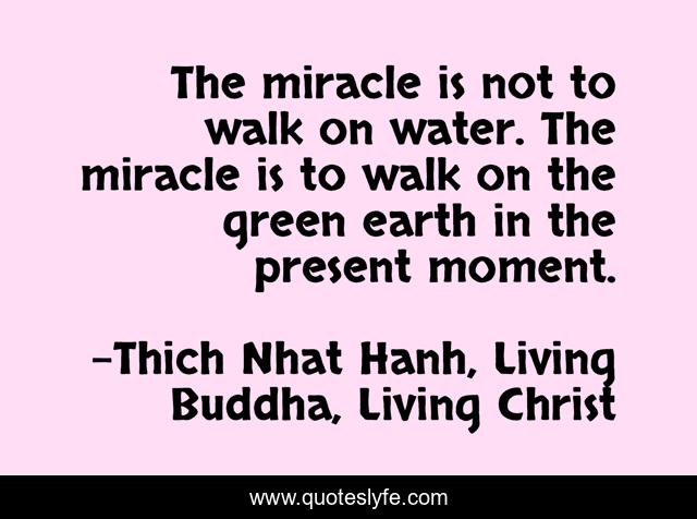 "Thich Nhat Hanh, Living Buddha, Living Christ Quotes." Quoteslyfe.com, 2025. Fri. 05 Dec. 2025. <https://www.quoteslyfe.com/quote/The-miracle-is-not-to-walk-on-236424>.
