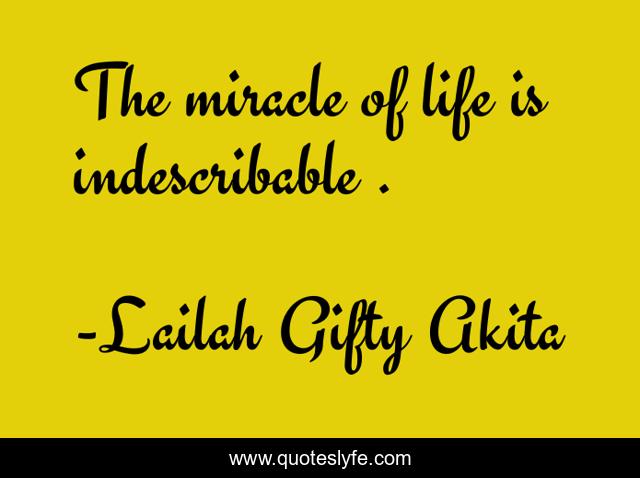 "Lailah Gifty Akita Quotes." Quoteslyfe.com, 2025. Fri. 05 Dec. 2025. <https://www.quoteslyfe.com/quote/The-miracle-of-life-is-indescribable-84484>.