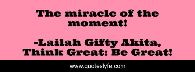 "Lailah Gifty Akita, Think Great: Be Great! Quotes." Quoteslyfe.com, 2025. Fri. 05 Dec. 2025. <https://www.quoteslyfe.com/quote/The-miracle-of-the-moment-114930>.