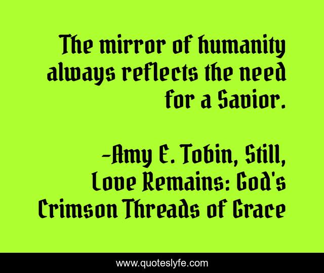 This page presents the quote "The mirror of humanity always reflects the need for a Savior.". Author of this quote is Amy E. Tobin, Still, Love Remains: God's Crimson Threads of Grace. This quote is about enthusiasm, christian, inspirational,.