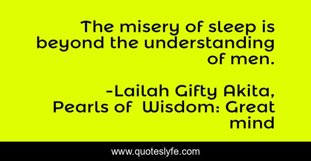 "Lailah Gifty Akita, Pearls of Wisdom: Great mind Quotes." Quoteslyfe.com, 2025. Mon. 08 Dec. 2025. <https://www.quoteslyfe.com/quote/The-misery-of-sleep-is-beyond-the-127668>.