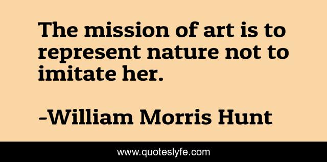 This page presents the quote "The mission of art is to represent nature not to imitate her.". Author of this quote is William Morris Hunt. This quote is about art, mission, her,.
