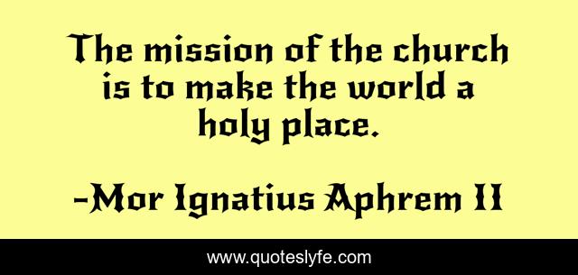 This page presents the quote "The mission of the church is to make the world a holy place.". Author of this quote is Mor Ignatius Aphrem II. This quote is about world-peace, mission, church,.