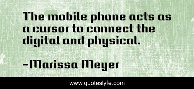 This page presents the quote "The mobile phone acts as a cursor to connect the digital and physical.". Author of this quote is Marissa Meyer. This quote is about mobile, phone, life, technology, business,.