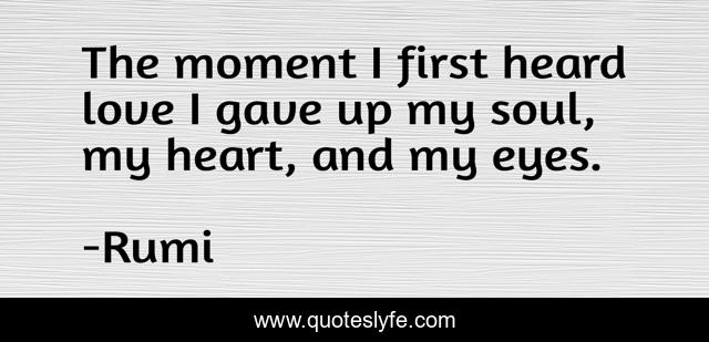 This page presents the quote "The moment I first heard love I gave up my soul, my heart, and my eyes.". Author of this quote is Rumi. This quote is about heart, eyes, soul,.
