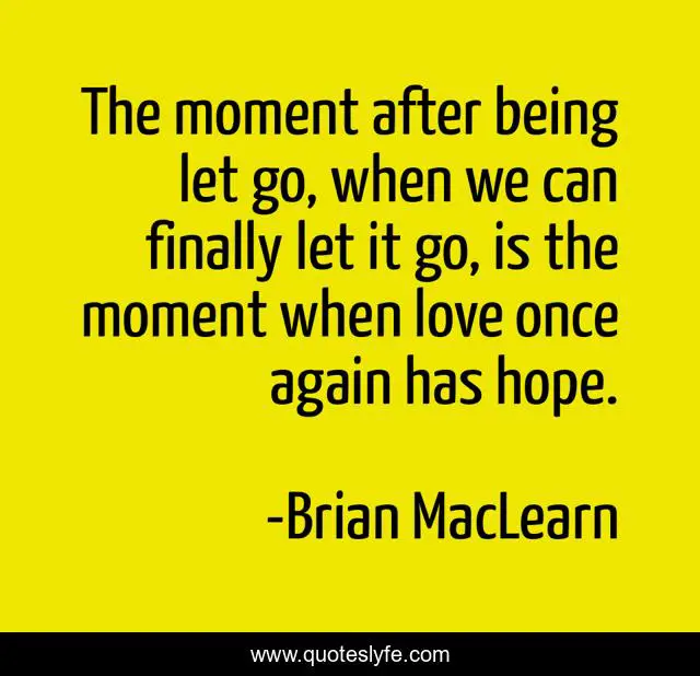 This page presents the quote "The moment after being let go, when we can finally let it go, is the moment when love once again has hope.". Author of this quote is Brian MacLearn. This quote is about love, letting-go, hope, forgiveness, affection, inspiration,.