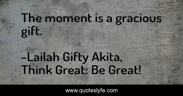 "Lailah Gifty Akita, Think Great: Be Great! Quotes." Quoteslyfe.com, 2025. Fri. 05 Dec. 2025. <https://www.quoteslyfe.com/quote/The-moment-is-a-gracious-gift-172910>.