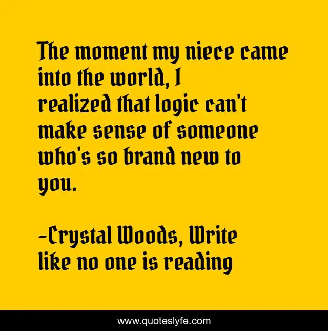 "Crystal Woods, Write like no one is reading Quotes." Quoteslyfe.com, 2025. Mon. 08 Dec. 2025. <https://www.quoteslyfe.com/quote/The-moment-my-niece-came-into-the-228926>.