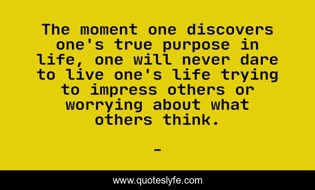 The moment one discovers one's true purpose in life, one will never dare to live one's life trying to impress others or worrying about what others think.