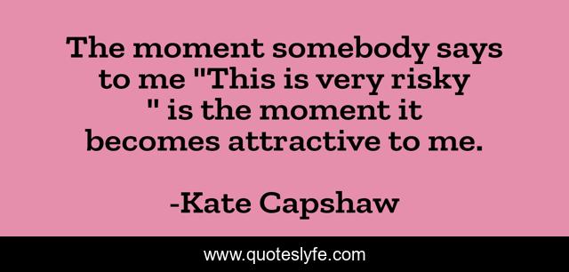 This page presents the quote "The moment somebody says to me "This is very risky " is the moment it becomes attractive to me.". Author of this quote is Kate Capshaw. This quote is about enthusiasm, inspirational,.