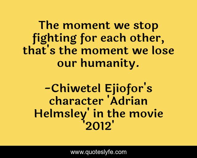 "Chiwetel Ejiofor's character 'Adrian Helmsley' in the movie '2012' Quotes." Quoteslyfe.com, 2025. Sat. 06 Dec. 2025. <https://www.quoteslyfe.com/quote/The-moment-we-stop-fighting-for-each-71527>.