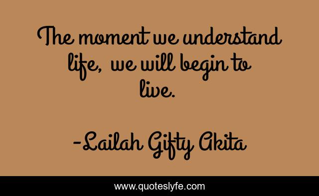 This page presents the quote "The moment we understand life, we will begin to live.". Author of this quote is Lailah Gifty Akita. This quote is about living, life, wise-words, understanding,.