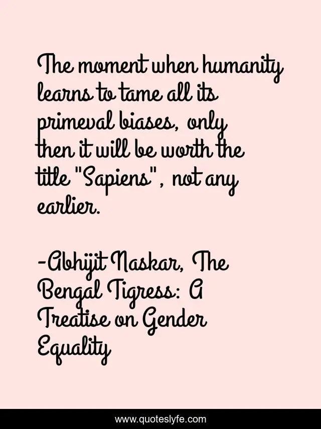 "Abhijit Naskar, The Bengal Tigress: A Treatise on Gender Equality Quotes." Quoteslyfe.com, 2025. Fri. 05 Dec. 2025. <https://www.quoteslyfe.com/quote/The-moment-when-humanity-learns-to-tame-71335>.
