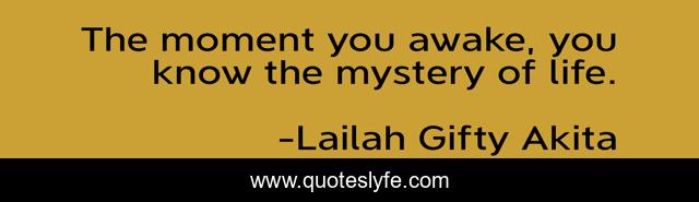 This page presents the quote "The moment you awake, you know the mystery of life.". Author of this quote is Lailah Gifty Akita. This quote is about mystery, life, moment, awake, inspirational, enthusiasm,.
