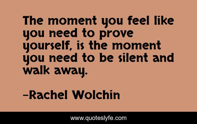 This page presents the quote "The moment you feel like you need to prove yourself, is the moment you need to be silent and walk away.". Author of this quote is Rachel Wolchin. This quote is about management, business, self-esteem,.