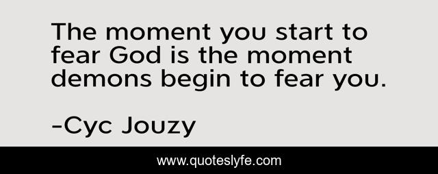 This page presents the quote "The moment you start to fear God is the moment demons begin to fear you.". Author of this quote is Cyc Jouzy. This quote is about life, bible, god, spiritual, demons, christianity, heaven, prayer, fear,.