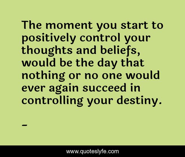 The moment you start to positively control your thoughts and beliefs, would be the day that nothing or no one would ever again succeed in controlling your destiny.