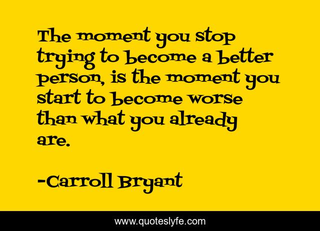 This page presents the quote "The moment you stop trying to become a better person, is the moment you start to become worse than what you already are.". Author of this quote is Carroll Bryant. This quote is about philisophical, philosophy-of-life, philosophy, philosophy-of-people,.