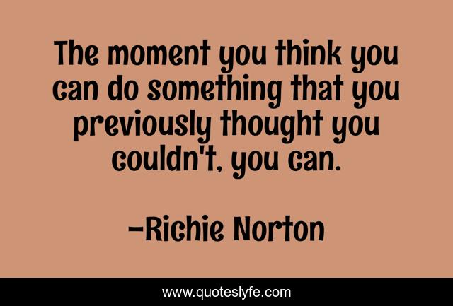 This page presents the quote "The moment you think you can do something that you previously thought you couldn't, you can.". Author of this quote is Richie Norton. This quote is about confidence, self-mastery, mindful, marketing, work, success, self-help, entrepreneur, innovation,.