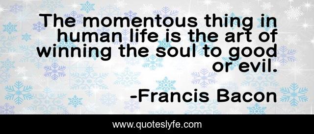 This page presents the quote "The momentous thing in human life is the art of winning the soul to good or evil.". Author of this quote is Francis Bacon. This quote is about life, art, evil,.