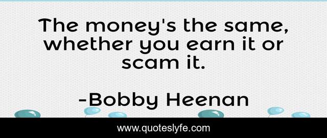 This page presents the quote "The money's the same, whether you earn it or scam it.". Author of this quote is Bobby Heenan. This quote is about earn, same,.