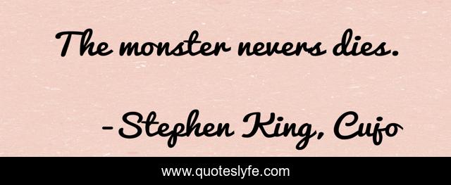 "Stephen King, Cujo Quotes." Quoteslyfe.com, 2025. Sun. 07 Dec. 2025. <https://www.quoteslyfe.com/quote/The-monster-nevers-dies-21079>.