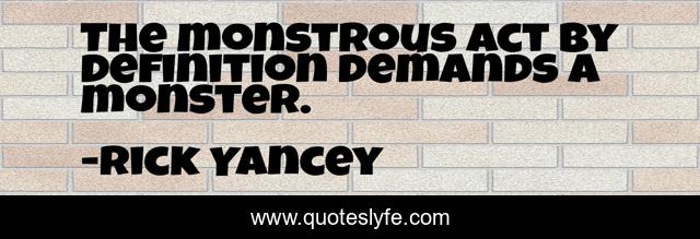 This page presents the quote "The monstrous act by definition demands a monster.". Author of this quote is Rick Yancey. This quote is about murder, monster, evil,.