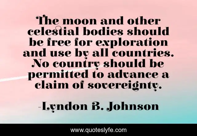 This page presents the quote "The moon and other celestial bodies should be free for exploration and use by all countries. No country should be permitted to advance a claim of sovereignty.". Author of this quote is Lyndon B. Johnson. This quote is about country, free, moon,.