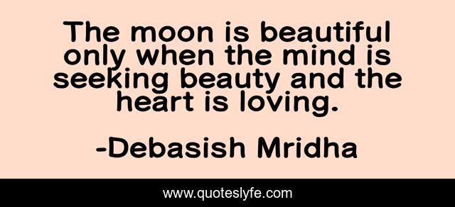 This page presents the quote "The moon is beautiful only when the mind is seeking beauty and the heart is loving.". Author of this quote is Debasish Mridha. This quote is about beautiful, heart, life, debasish, beauty, seeking, mridha, philosophy, mind,.