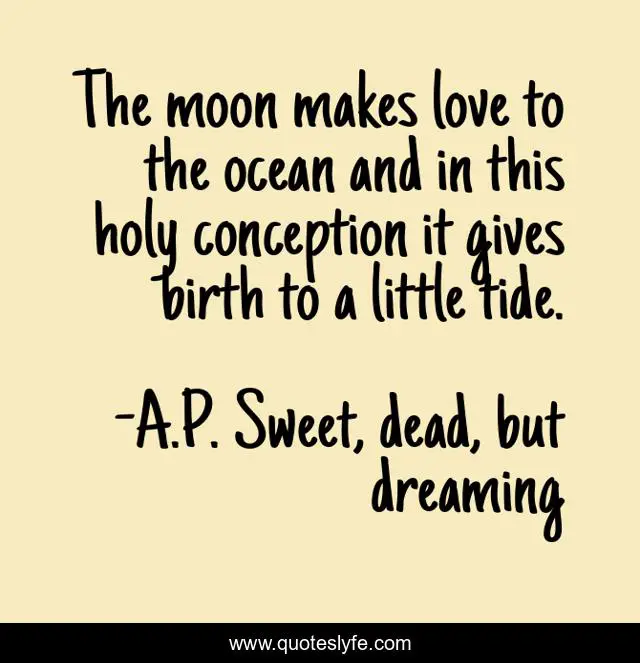 "A.P. Sweet, dead, but dreaming Quotes." Quoteslyfe.com, 2025. Fri. 05 Dec. 2025. <https://www.quoteslyfe.com/quote/The-moon-makes-love-to-the-ocean-234072>.