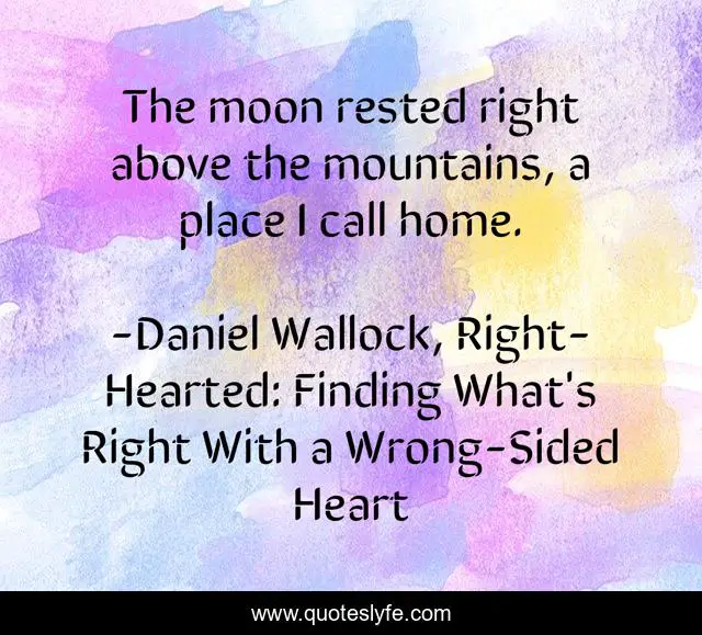This page presents the quote "The moon rested right above the mountains, a place I call home.". Author of this quote is Daniel Wallock, Right-Hearted: Finding What's Right With a Wrong-Sided Heart. This quote is about mountains, life, love, nature, full-moon, moon, right-hearted, finding-a-home, home,.