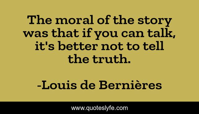 This page presents the quote "The moral of the story was that if you can talk, it's better not to tell the truth.". Author of this quote is Louis de Bernières. This quote is about lie, story, moral, truth,.