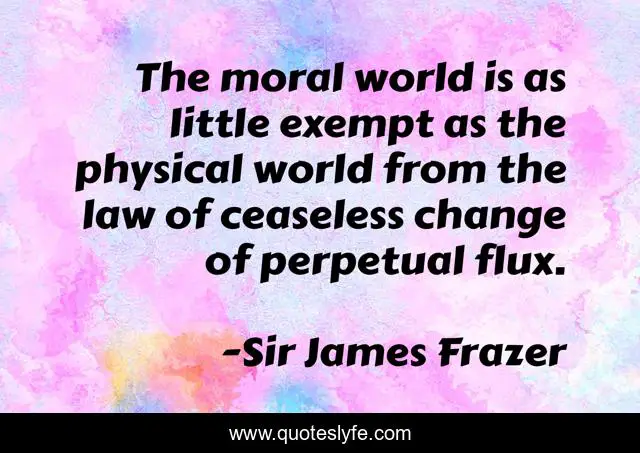 This page presents the quote "The moral world is as little exempt as the physical world from the law of ceaseless change of perpetual flux.". Author of this quote is Sir James Frazer. .