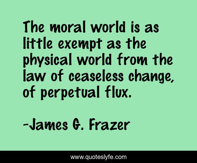 This page presents the quote "The moral world is as little exempt as the physical world from the law of ceaseless change, of perpetual flux.". Author of this quote is James G. Frazer. This quote is about world, law, moral,.
