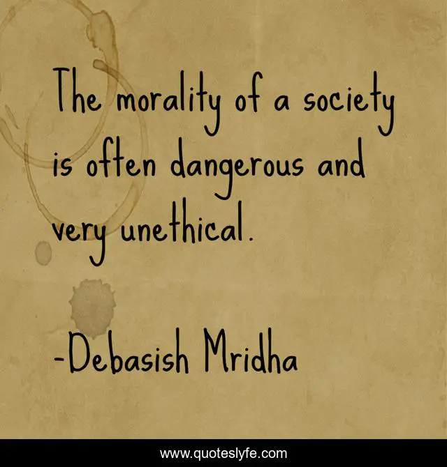 This page presents the quote "The morality of a society is often dangerous and very unethical.". Author of this quote is Debasish Mridha. This quote is about morality-of-society, philosophy, debasish-mridha, quotes, inspirational, enthusiasm, unethical, debasish-mridha-m-d, morality,.