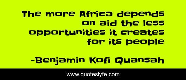 This page presents the quote "The more Africa depends on aid the less opportunities it creates for its people". Author of this quote is Benjamin Kofi Quansah. This quote is about aid, africa, economic-growth, opportunitytunity,.