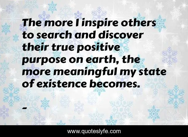 The more I inspire others to search and discover their true positive purpose on earth, the more meaningful my state of existence becomes.