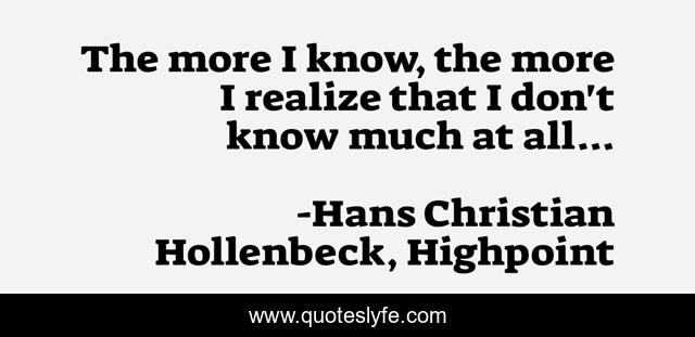 This page presents the quote "The more I know, the more I realize that I don't know much at all...". Author of this quote is Hans Christian Hollenbeck, Highpoint. This quote is about human-condition, humor, psychology,.