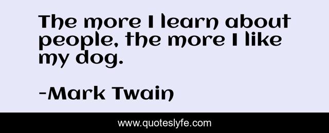This page presents the quote "The more I learn about people, the more I like my dog.". Author of this quote is Mark Twain. This quote is about learn, animals, like, people,.