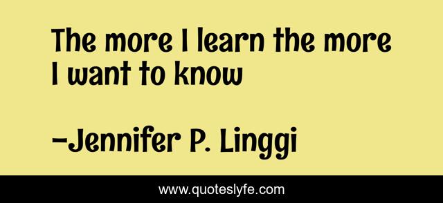 This page presents the quote "The more I learn the more I want to know". Author of this quote is Jennifer P. Linggi. .