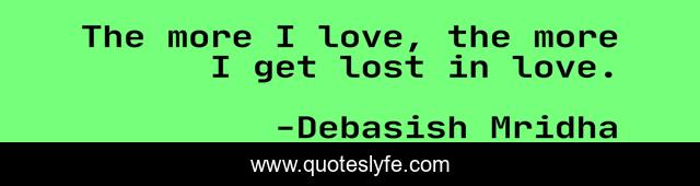 This page presents the quote "The more I love, the more I get lost in love.". Author of this quote is Debasish Mridha. This quote is about love, philosophy, debasish-mridha, quotes, the-more-i-love, inspirational, enthusiasm, debasish-mridha-m-d, affection,.