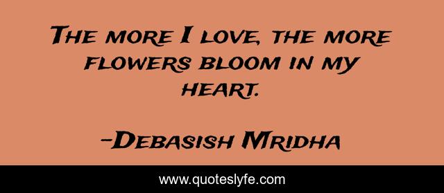 "Debasish Mridha Quotes." Quoteslyfe.com, 2025. Sat. 06 Dec. 2025. <https://www.quoteslyfe.com/quote/The-more-I-love-the-more-flowers-206460>.