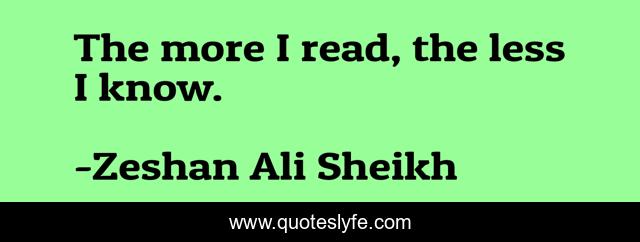 This page presents the quote "The more I read, the less I know.". Author of this quote is Zeshan Ali Sheikh. .
